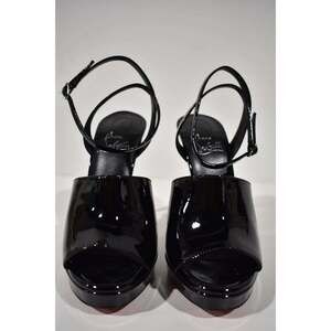 Christian Louboutin Miradona 120 Black Patent Ankle Strap Sandal Heel Pump 40
