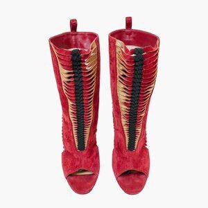 Christian Louboutin Miss Circus 120 Boot EU 35.5 US 5.5 Red High Heel Cutout