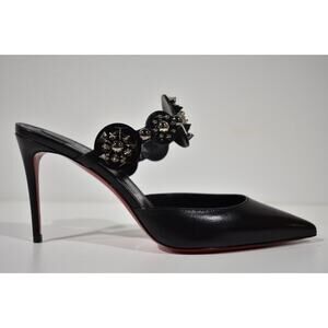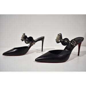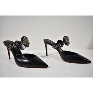 Christian Louboutin Miss Goldora 85 Black Backless Sandal Mule Heel Pump 39