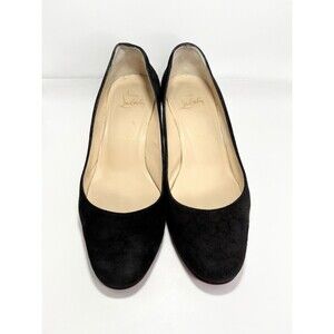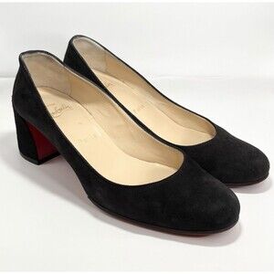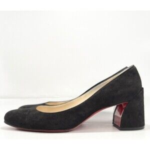 Christian Louboutin Miss Sab 55 Black Suede Pumps Block Heels Sz EU 36 6