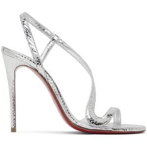Christian Louboutin NIB Rosalie Silver Metallic Leather Stiletto Heels Sandals