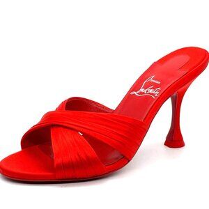 Christian Louboutin NICOLE IS BACK 85 Crepe Silk Mules Sandals Heels Shoes