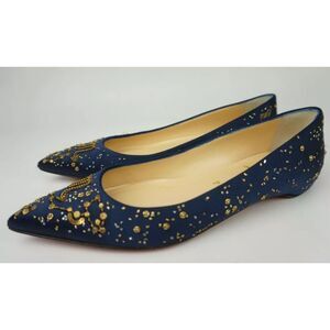 Christian Louboutin Navy Blue Satin Scorpio Ballerina Flats Size 37.5 $2000+