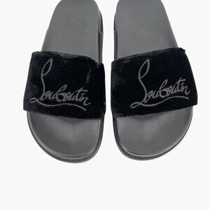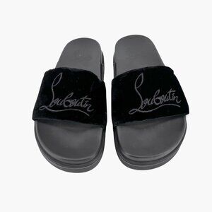 Christian Louboutin 'Navy Pool' Slide Sandals Size 37 US 7 Black Velvet Logo