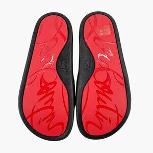 Christian Louboutin 'Navy Pool' Slide Sandals Size 37 US 7 Black Velvet Logo 25