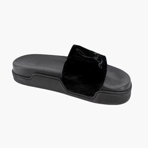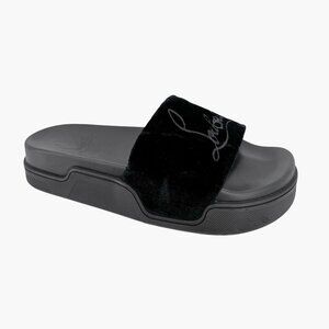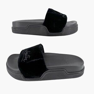Christian Louboutin 'Navy Pool' Slide Sandals Size 37 US 7 Black Velvet Logo