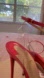 Elevate your look with these vibrant pink T-strap heels. Original box, shoe bags and heels replacement included.