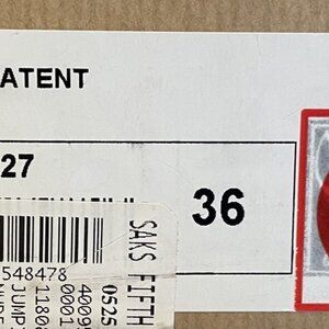 Christian Louboutin patent leather pump. Pointed toe. Asymmetric stretch strap. Half d'Orsay silhouette. Slip-on style
