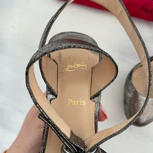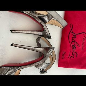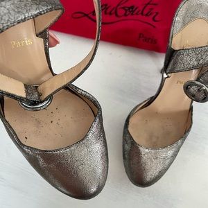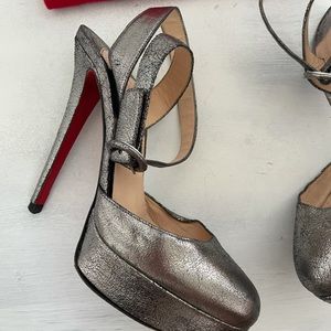 Christian Louboutin Ole Ole Metallic Gray Silver Platform Pumps Heels Ankle