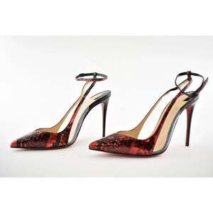 Christian Louboutin Optichoc 100 Black Red Patent PVC Ankle Strap Heel Pump 36