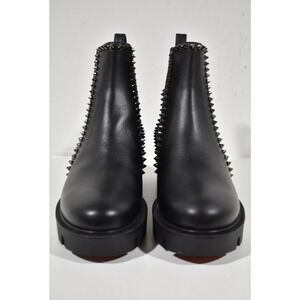 Christian Louboutin Out Lina Spike Lug Flat Black Calf Chelsea Ankle Boot 37.5