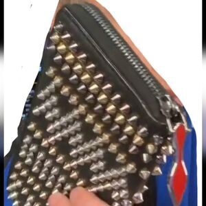 Christian Louboutin PANNETTONE Stud ZIP LONG WALLET BLACK RED SOLE GOLD SILVER