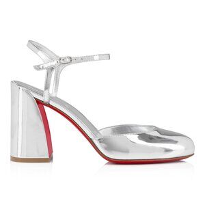 An iconic Louboutin pump looks classically glamorous in glossy patent leather.