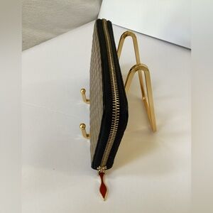 Sleek Christian Louboutin wallet in metallic gold. Features signature design. Perfect for a chic look.