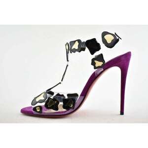 Christian Louboutin Parsemis 100 Black Gold PVC Patent Suede Sandal Heel Pump 36