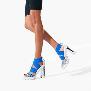 Christian Louboutin Patrouiagoma 100 Blue Strap Sandal Block Heel Pump 40.5