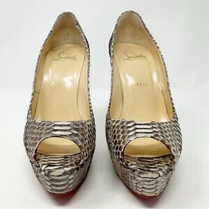 Christian Louboutin Peep Toe Platform Snakeskin Heels