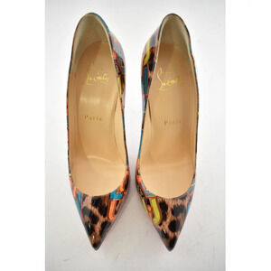 Christian Louboutin Pigalle Follies 100 Black Loubileo Leopard Heel Pump 35.5