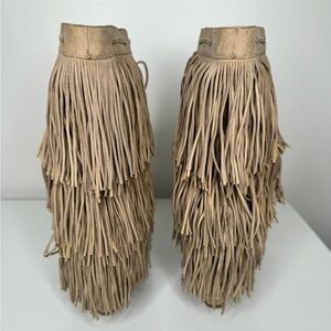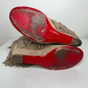 Christian Louboutin Pina Tan Suede Flat Fringe Wedge Boots- Boho Chic