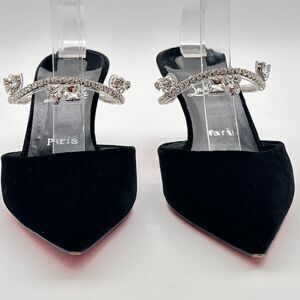 Christian Louboutin Planet Queen 70 Velvet Crystal Embellished Mules 70mm EU 39