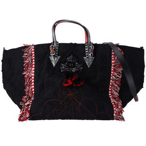 Christian Louboutin Portugaba Tote Bag 3195183 Black Red Multi Canvas Leather