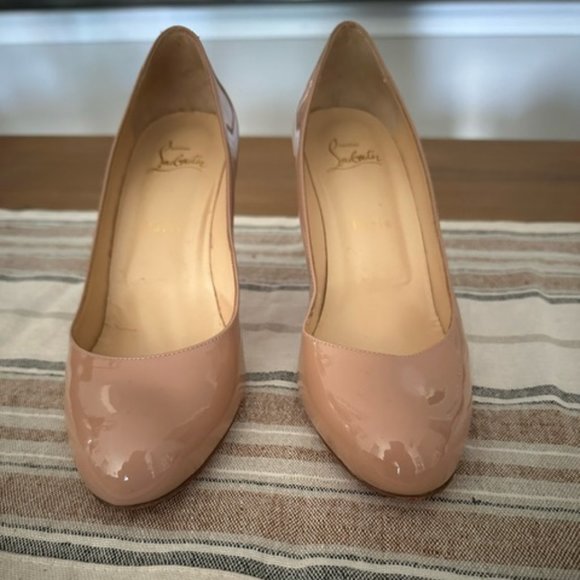 Selling my Christian Louboutin Dolly 85 Patent Leather Pumps. I have worn them about 3 times- I am a mom of 2 year old twin boys and will now be in sneakers lol!