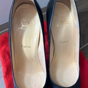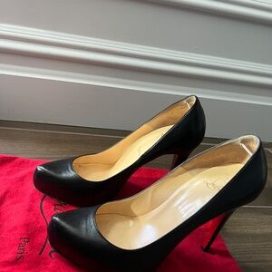 Christian Louboutin black leather pumps. 4 1/2 in heel with 1 in covered platform. Good condition