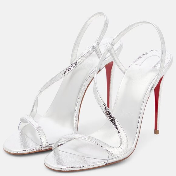Christian Louboutin ROSALIE 100 Strappy Metallic Sling Sandals Heels Shoes