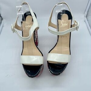 Christian Louboutin Rare bella platform sandal white leather strappy tweed 41