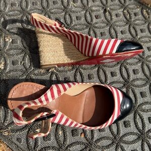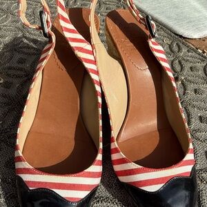 Elevate your style with these Christian Louboutin heels, featuring a bold red and black color scheme and a striking striped design. The elegant slingback strap ensures a secure fit, while the sophisticated color-blocking adds a touch of modern flair. Perfect for both casual and dressy occasions, these heels offer a blend of comfort and high fashion.