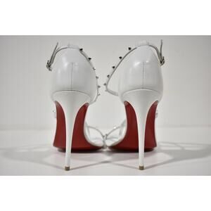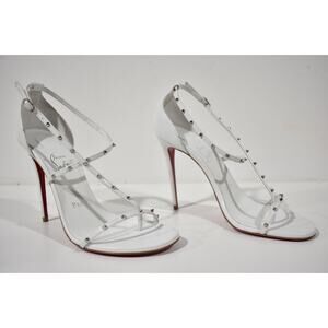 Christian Louboutin Riojana Spikes 100 White Ankle Strappy Sandal Heel Pump 37