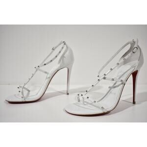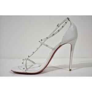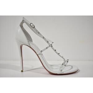 Christian Louboutin Riojana Spikes 100 White Ankle Strappy Sandal Heel Pump 39.5