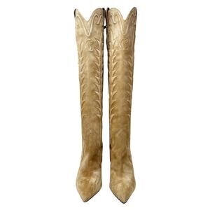 Christian Louboutin Santia Botta 85 Suede Knee High Western Boots Size 38.5
