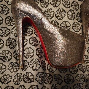 Christian Louboutin Sexy Gold Glitter Highness Platform Peep Toe Pumps size 6, runs more like a 5 1/2 to be honest