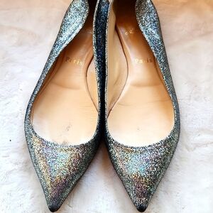 Elegant silver glitter flats. Pointed toe design. Perfect for any occasion.