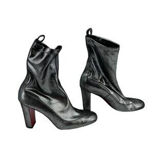Christian Louboutin Silver Synthetic Ankle Booties | Size 40EU