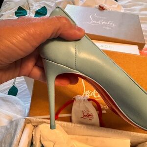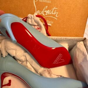 Elegant sky blue heels with signature red sole. Perfect for adding a pop of color. Size38-1/2 never ever worn !!!!