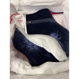 Christian Louboutin So Apostropha 80 Velvet Ankle Boots Marine Blue Size 38.5