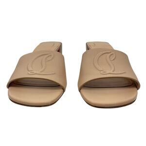 Christian Louboutin So CL Mules 55 Leather Heel Sandal Beige Size 37
