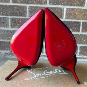 The Christian Louboutin So Kate 120 iconic pump with timeless elegance brilliantly combines discretion and sophistication. They are crafted from suede with the brand's signature red sole. Its low - cut vamp and seductive pointed - toe give it a feminine charm. These pumps have a high heel and stiletto.