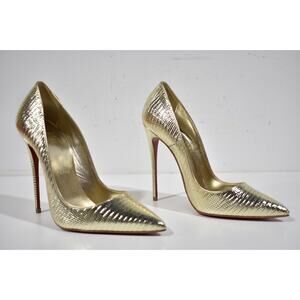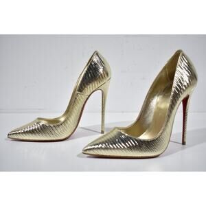 Christian Louboutin So Kate 120 Gold Lizard Lizzy Pointy Stiletto Heel Pump 37.5