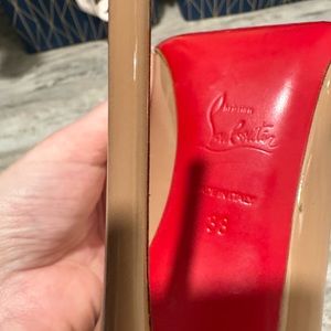 Reposhing this item I purchased from @nina1000. Loved it, but ready to rotate for something new. The size of this heel is 38EU but I am a true 7US and they fit. So I would say these do run small. If you are a seven or right around it, they will fit!