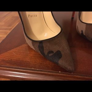 Christian Louboutin "So Kate" pumps. Size 37.5 (7 1/2) Featuring colors of light brown, dark brown, and black. Worn before, but shoes in perfect condition. Soles replaced with rubber red bottom for grip and slip protection. Heel tap to protect shoe tip. Box and dust bag included in great condition.