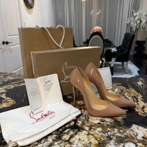 Beautiful pair of So Kate 120mm pumps in nude patent leather. Excellent used condition — worn only a few times and recently taken to a professional cobbler for red protectant soles.