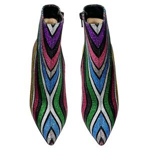 Christian Louboutin So Kate Rainbow Glitter Pointed Toe Ankle Boots- Size 36.5