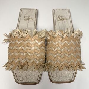 Christian Louboutin Soudana Raffia Flat Slip On Sandals EU 36.5 US 6.5 Low Heel