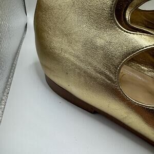 Christian Louboutin Sparty Flat Nappa Laminata Light Gold Gladiator Sandals 40