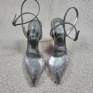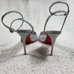 Christian Louboutin Spikaqueen crystal-embellished PVC & glittered-leather sz 5