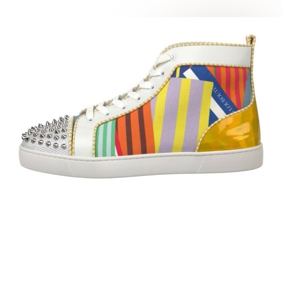 Christian Louboutin Spiked Canvas Printed High Top Sneakers