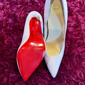 Step out in style with this pair of elegant Christian Louboutin nude stiletto heels. These beautiful shoes offer a sleek and sophisticated look / Undersides of shoes are red / Each shoe has its own dust-bag / REASONABLE OFFERS WELCOME